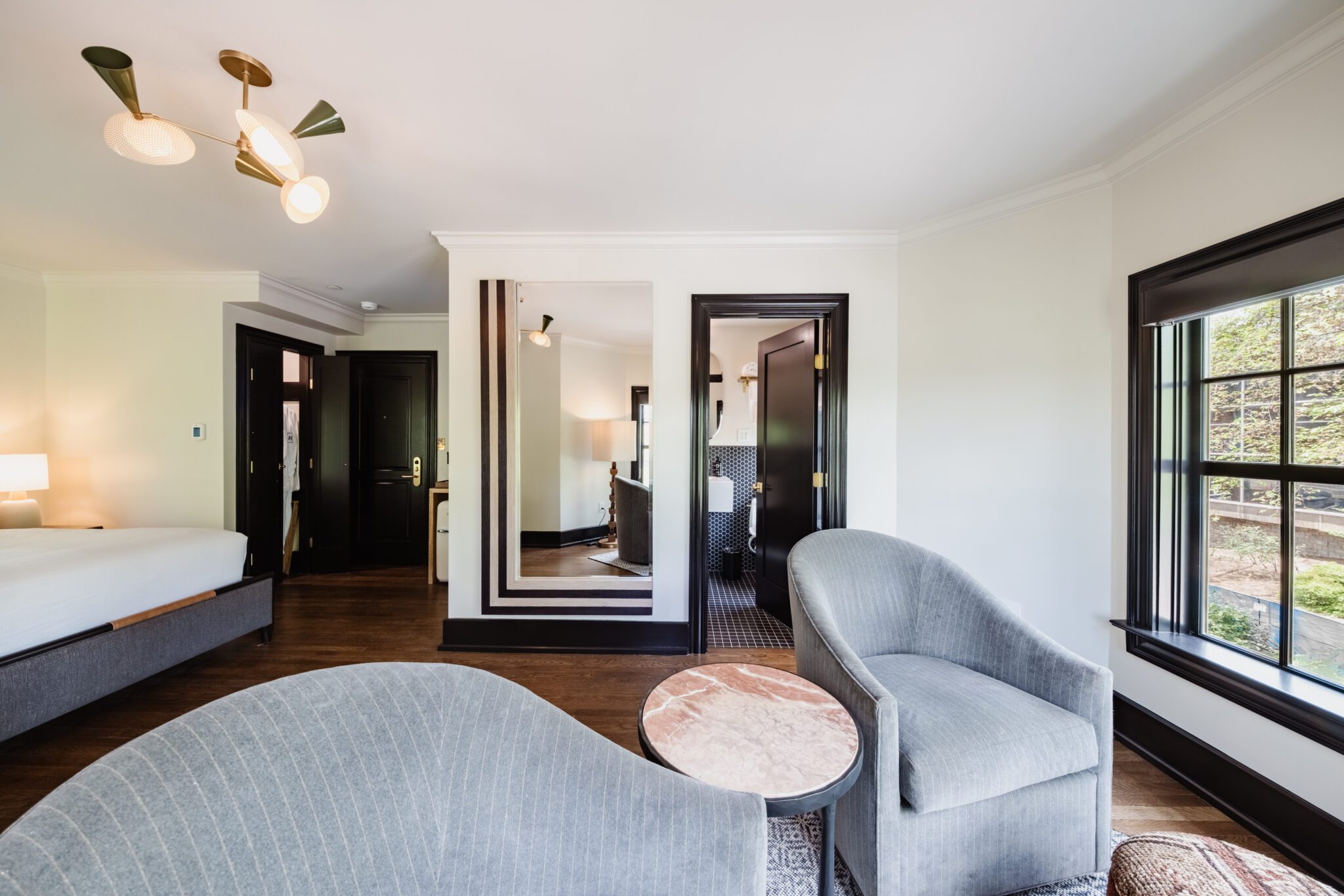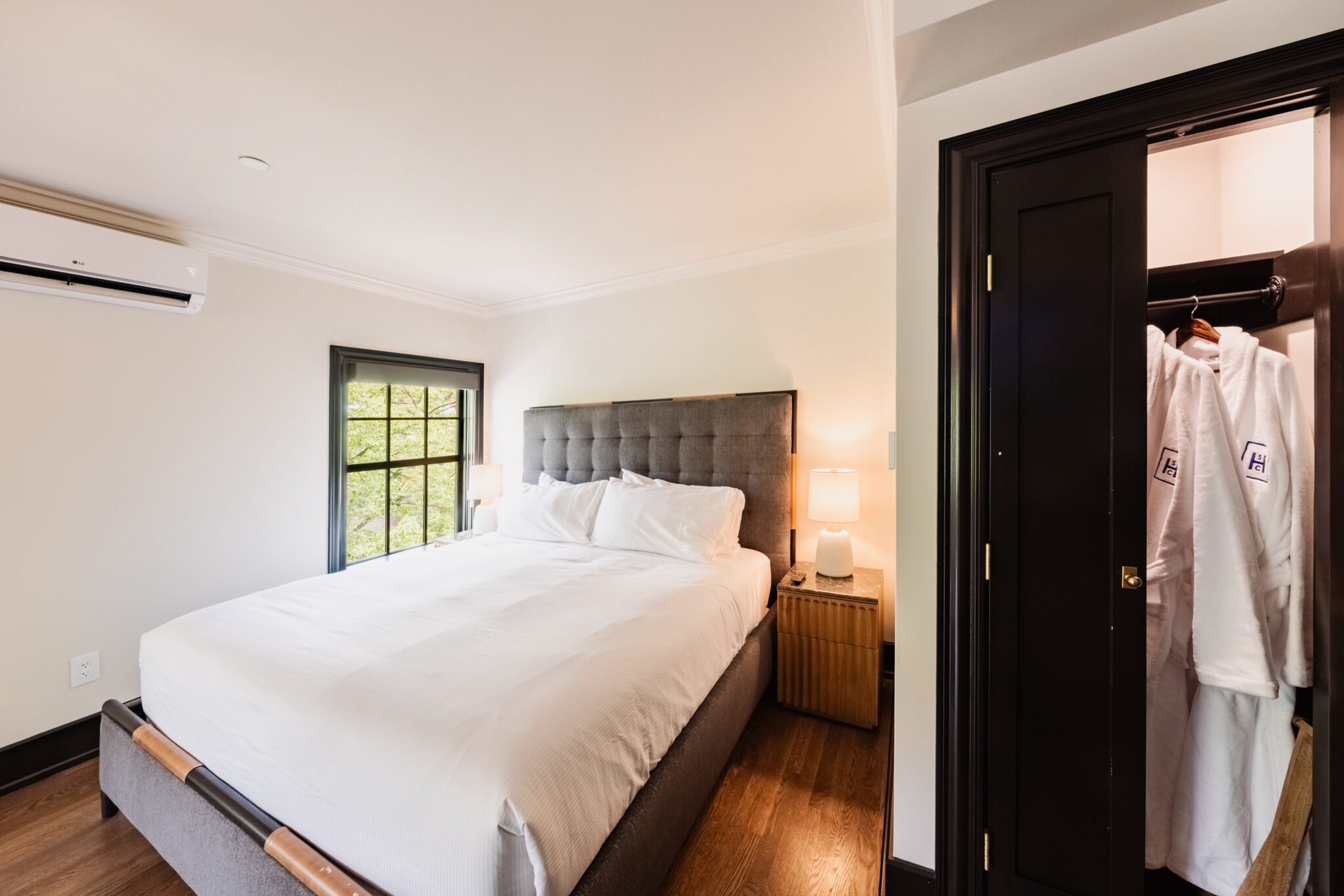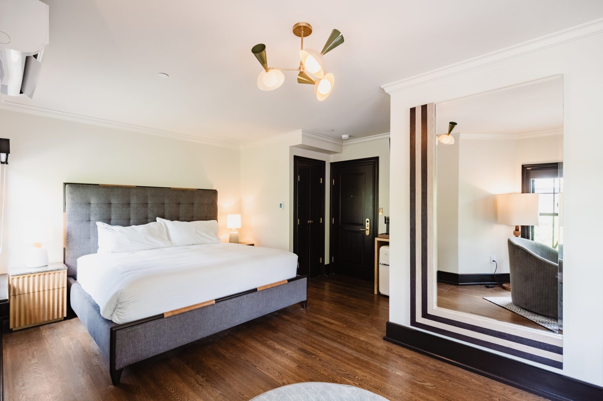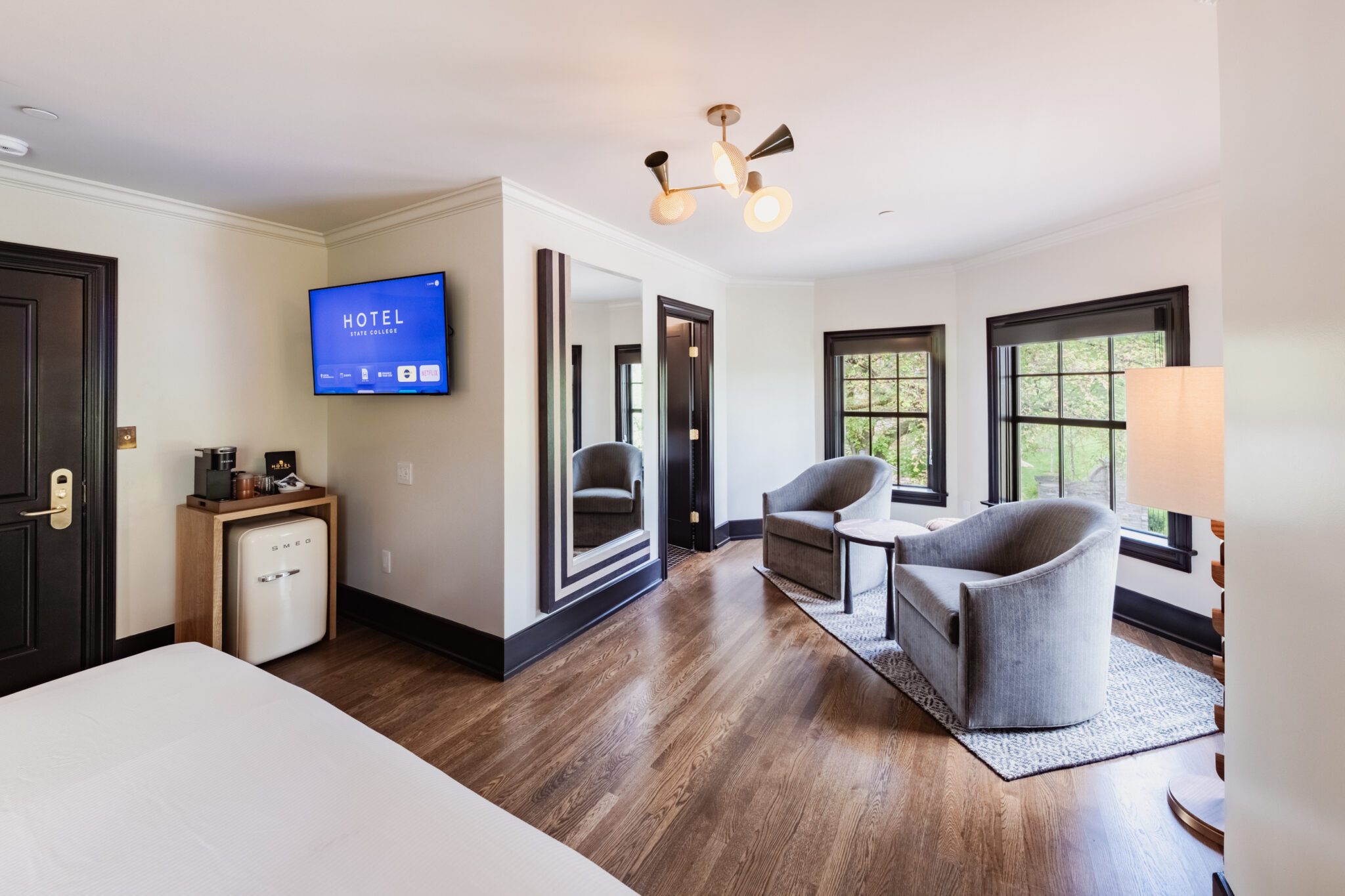 Hotel State College offers a selection of 13 well-appointed rooms that blend historic charm with contemporary design. Whether you’re in town for business, a getaway, or a Penn State game, our rooms and suites provide a perfect retreat in the heart of State College. With intimate views of the Penn State campus, classic furnishings, and thoughtful amenities, every stay is an indulgence in comfort and style.